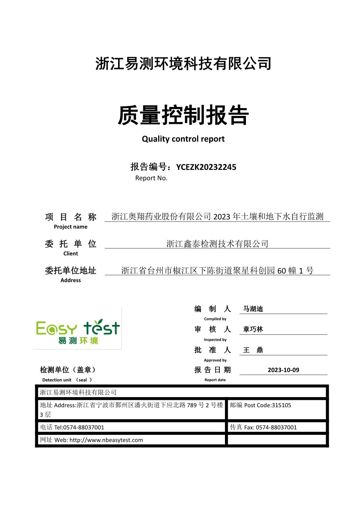 欧宝·官方端网站在线土壤和地下水自行监测报告2023